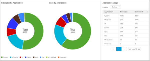Blueprint’s analytics and dashboards visually present the applications used by your entire estate of automations, along with frequency of use.