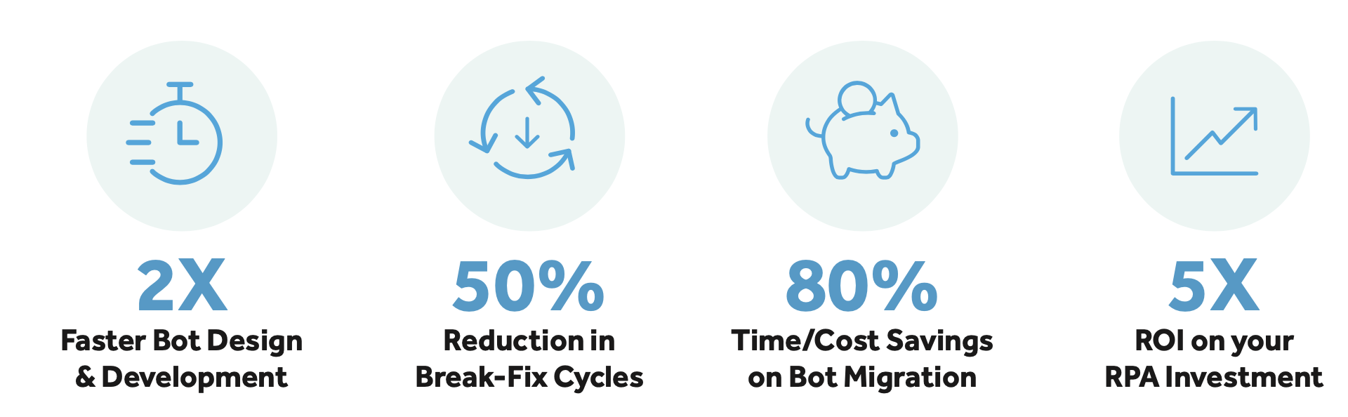 Digital Blueprints contain the precise guidance and context RPA developers need, which results in:
