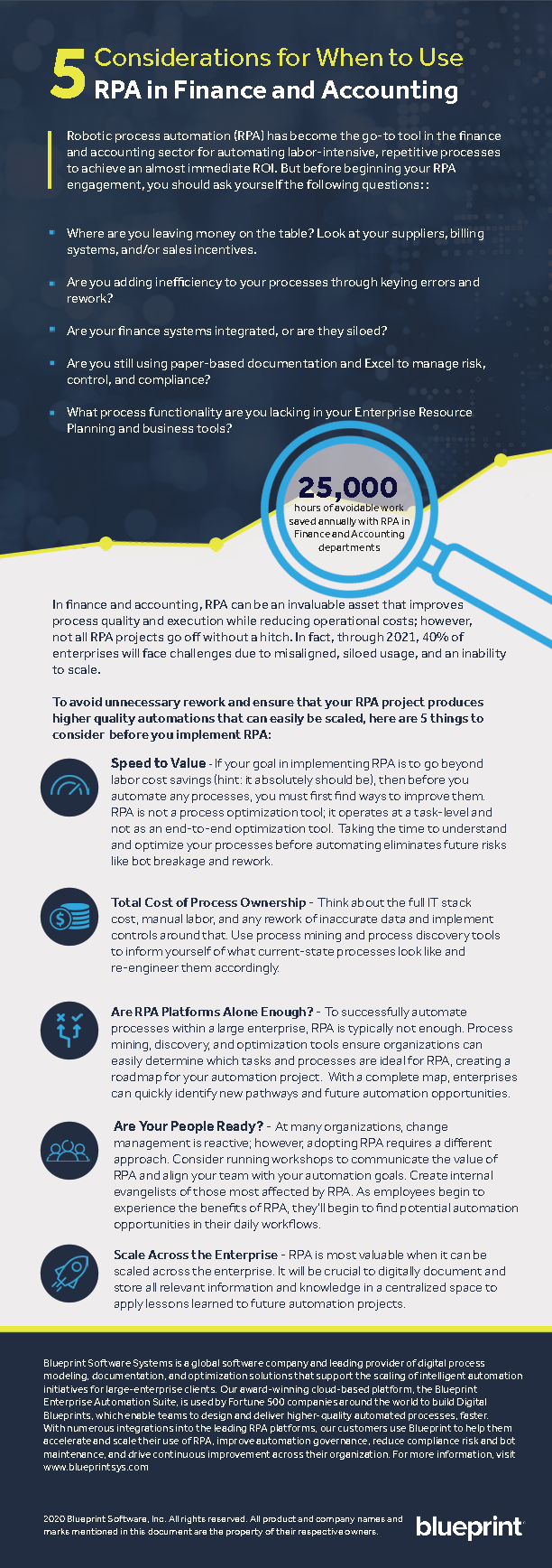 INFOGRAPHIC: 6 Considerations for When to Use RPA in Finance and Accounting