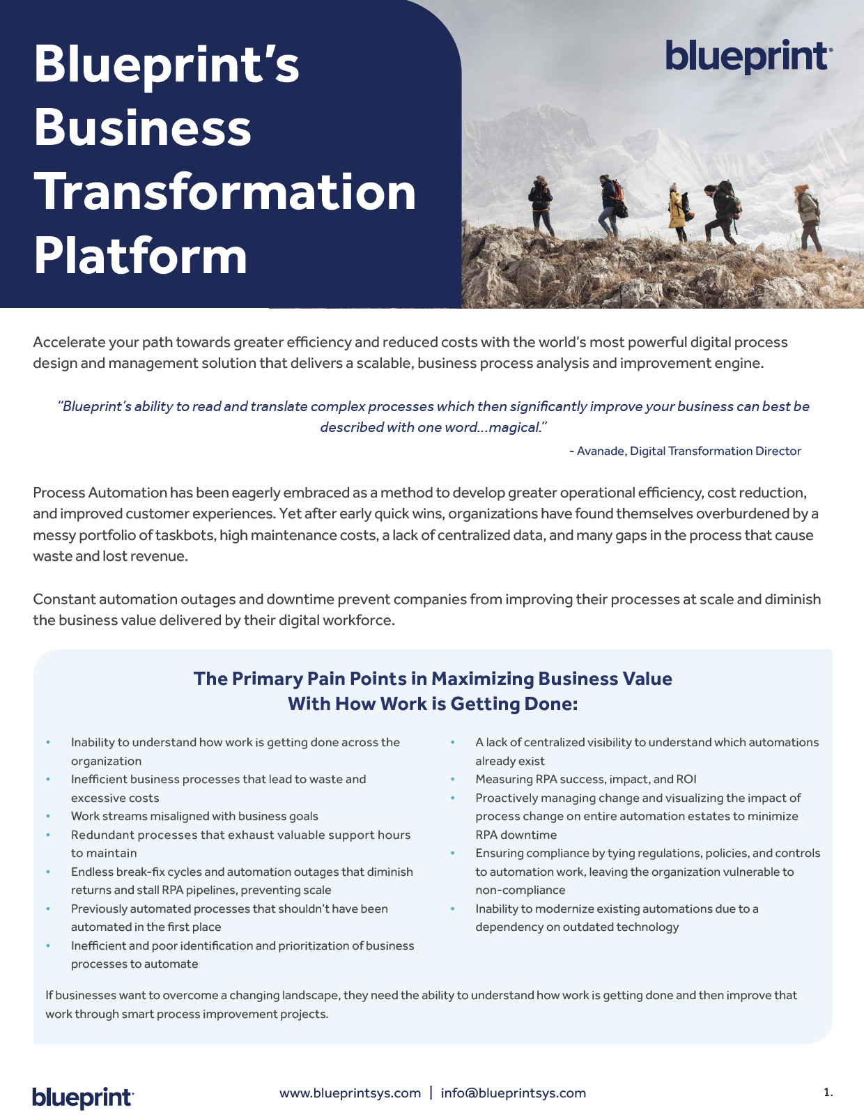 - How Blueprint solves the primary pain points in maximizing business value from your automation practice