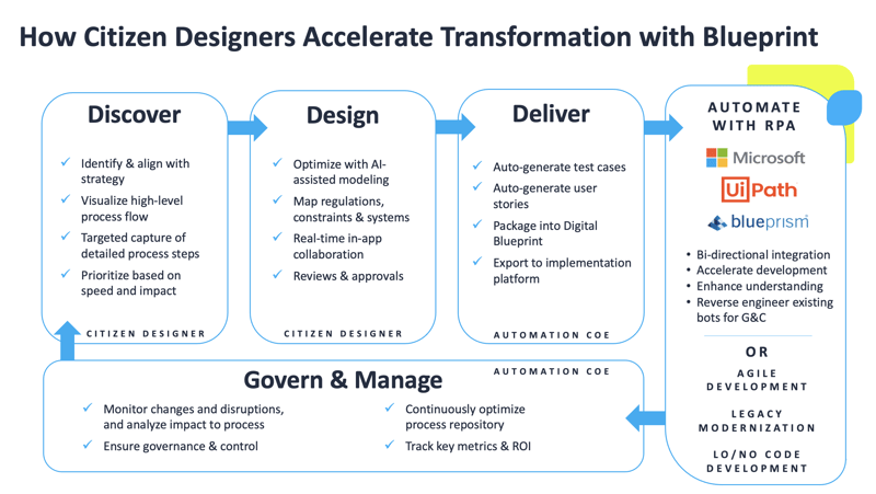 Integrate Blueprint with the leading RPA platforms, process & task mining tools, test suites, and ALM solutions to extend functionality, accelerate development, and improve delivery.What our Customers are Saying