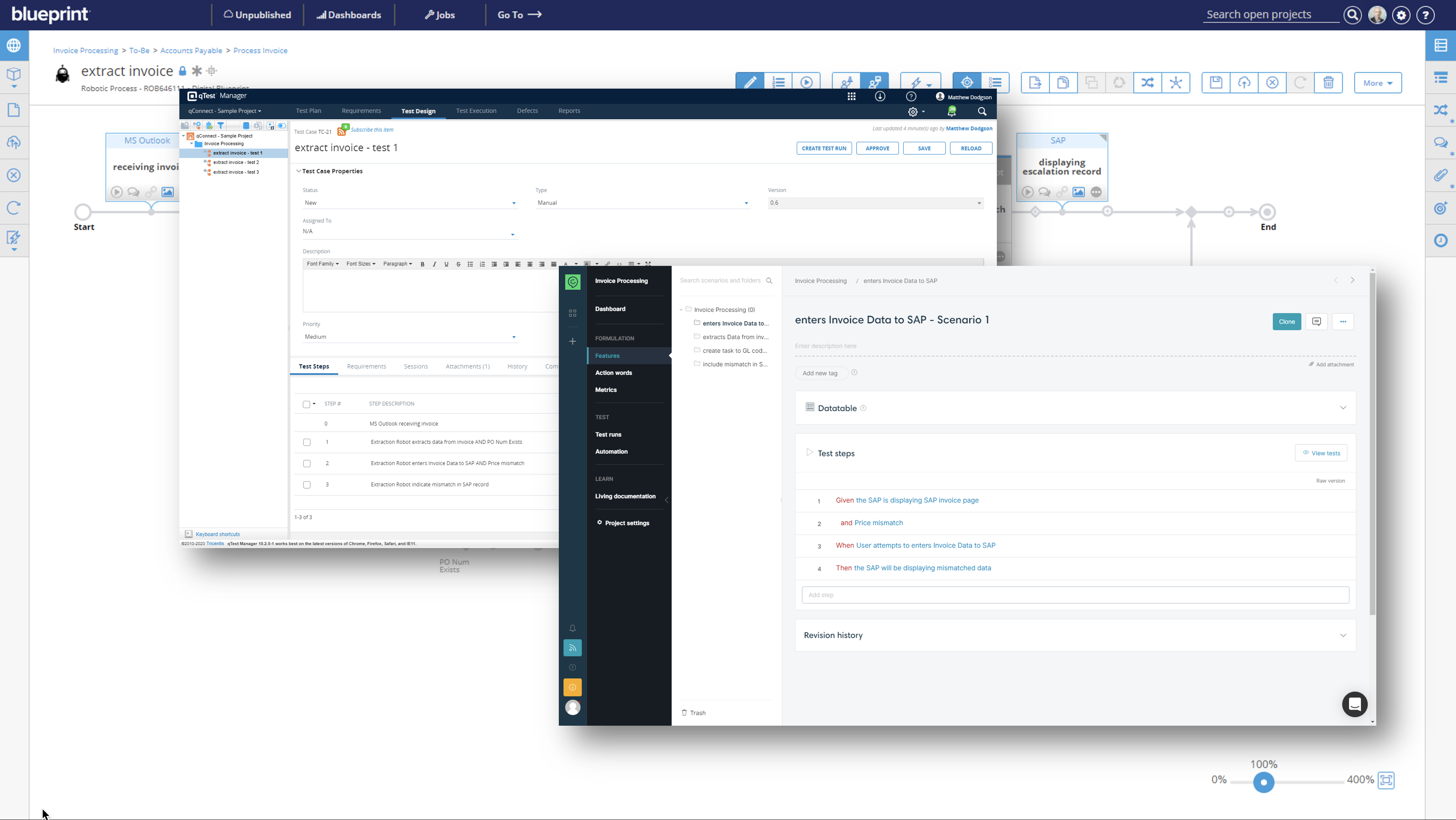 Blueprint offers native integration with a wide variety of complimentary software tools, including, RPA platforms, ALM tools, process/task mining solutions, and test suites. Ingest process data from virtually anywhere. Centralize, analyze, and optimize processes within Blueprint. Then sync processes to a number of integrated solutions to accelerate automation, testing, and aligned downstream development.