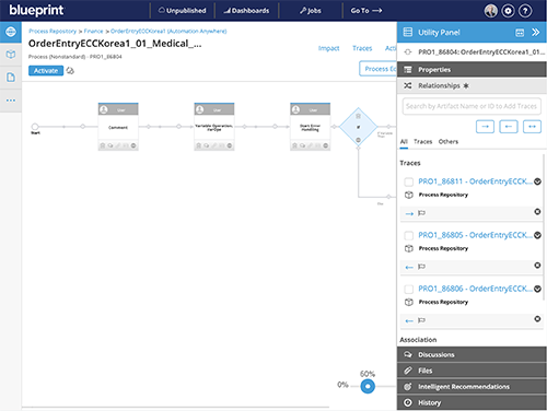 Blueprint ingests all your discovered business processes and automations from a variety of sources. Store and optimize all your automations and processes in one central location to drive your process improvement efforts.Gain a holistic view of your entire RPA estate