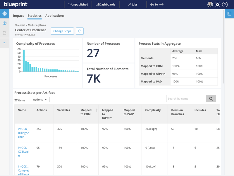Blueprint also provides instant analytics and insight into your entire automation estate which can help you further reduce the total cost of ownership and optmize your automations for even greater efficiency and effectiveness.